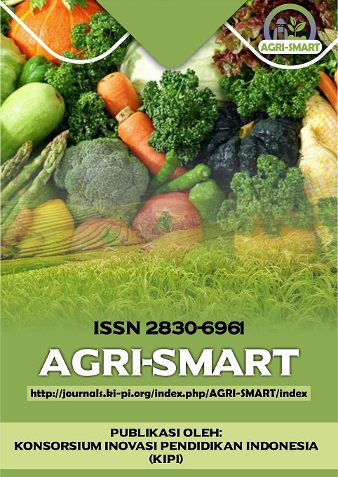 AGRI-SMART adalah jurnal yang menerbitkan makalah hasil penelitian dan analisis kebijakan yang dapat diterapkan dan ilmu pertanian seperti Agronomi, Ilmu Tanah, Hama dan Penyakit Tanaman, Teknik Pertanian, Teknologi Industri, Kimia Terapan, Kimia Lingkungan, Teknologi Pangan dan Pertanian, termasuk Kajian Sosial Ekonomi Lingkungan.